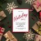 This design features a Christmas holiday calligraphy script invitation with a simple minimalist minimal cute, whimsical whimsy fun get together, stylish trendy typography lettering, a stylish trendy classic classy timeless, festive minimalist minimal traditional, festive holiday red and white, creative simplistic elegant elegance, simple red and white design, creative calligraphy script elegant