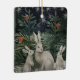 Sweet holiday snow bunnies under the trees. Personalise with a season greetings and the year on the back side of the ornament.