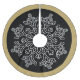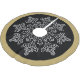 Holiday tree skirt shown in black colour with a snowflake print and coordinating border colour in matte gold-colour.