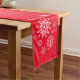 This table runner is shown with a festive Christmas holiday snowflakes print.