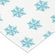 This holiday table runner is shown in a winter snowflakes print.