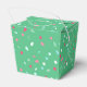 Holiday / Christmas themed treat / favour boxes. Ideal for sharing holiday baked goods. Features festive multicolored sprinkles (including little trees!) design on a green background.