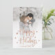 This simple and stylish Christmas photo card features modern faux rose gold handwritten script that says "Happy Holidays", and lots of elegant stars, with your favourite personal photo covering the entire front of the card.