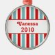 Fun and simple Holiday Stripes Round Christmas Ornament with red and light blue stripes. This customisable ornament becomes an instant keepsake when you add a name and a personalised greeting!