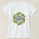 Women's basic t-shirt is shown with a festive holly wreath print.