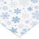 Holiday table runner is shown with a festive snowflakes print.