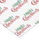 This holiday table runner is shown in White with a green and red Merry Christmas pattern.