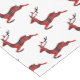 This Christmas holiday table runner is shown with a festive Christmas plaid reindeer print design.
