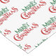 This holiday table runner is shown in White with a green and red Merry Christmas pattern.