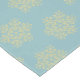 This table runner is shown with a glacier blue background colour and has a festive holiday gold snowflakes print design.