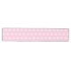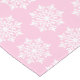This Christmas holiday table runner is shown with a Pink background colour and has a festive Christmas snowflakes print design.
