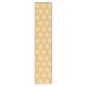 This Christmas holiday table runner is shown with a gold background colour and has a festive Christmas snowflakes print design.