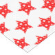 This table runner is shown with a festive holiday Christmas red stars print design.