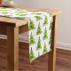 This holiday table runner is shown in White with a festive Christmas tree pattern.