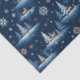 Tissue Paper in a holiday themed toile pattern of snow covered evergreens. deer and scattered snowflakes, on a deep, midnight blue background