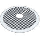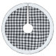 This holiday tree skirt is shown in a black and white country gingham look with white trim.