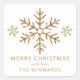 Holiday White & Gold Glitter Christmas Snowflake Square Sticker