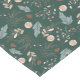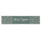 This simple Christmas table runner features a holiday winter greenery pattern appearing in soft tans and teals on a dark teal green background. The middle of the runner showcases the greeting "Merry Christmas" appearing in elegant script.