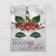 Holiday Postcard | Warmest Holiday Wishes in contemporary font and modern script calligraphy. A sparkly silver bokeh background sets off this Beautiful decorated Green and Gold Unicorn Face. She has gorgeous green glitter eyes with long lashes and a shiny gold and green striped horn and ears. - she wears a floral tiara of red poinsettias , holly and red lilies - Customise text at the bottom or you can delete it - This is a holiday non denominational design suitable for family or office to use. All Original Artwork © by WhimsicalArtwork™ This is part of a mix and match coordinated Holiday Collection.
