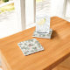 The coasters are gorgeous, a quality feel and heavy weight. They look like a precious archeological find. A rustic stone juxtaposed with a modern floral black and white print. I like the way the print goes slightly imperfect on the cut stone edges giving them a kind-of natural beauty.