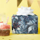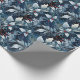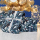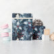 This wrapping paper is shown with a festive holiday blue frosted holly print.