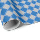 This holiday wrapping paper is shown with a Silver-Grey background and a diamond pattern in Royal Blue and a thinner light Blue stripe.