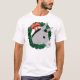 You'll love this cute little grey cartoon donkey head poking through a green holly Christmas holiday wreath decorated with a red bow.