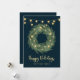 Holiday Wreath with Gold String Lights on Blue Card