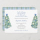 This little boy baby shower invitation design features watercolor Christmas trees adorned with blue and white "ginger jar" style baubles as well as white poinsettia and blue baubles. Watercolor elements originally handpainted by me. The reverse side features a light blue and green winter plaid check.