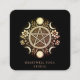 This celestial business card features an elegant sun, moon, star pentacle and lovely florals around the edge of the logo design. Dynamic cream with touches of terracotta, on black. A dynamic logo holistic or celestial themed style for holistic or celestial businesses or services.