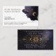 The design features our own hand-drawn holistic sun and moon crest design/logo in faux gold glitter. The design/logo is created with intricate and decorative details. The reverse side features the contact info and address displayed in a clean and modern layout. Deep navy and gold accent along with our moon design. The logo is hand-drawn original artwork by Moodthology.