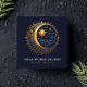 Navy and Gold holistic sun and moon business card featuring an intricate and decorative gold Celestial Sun & Moon design. Personalise the front with your business name and your own name or tagline, and include your contact details, QR code, and social media information on the back. This elegant and unique design offers a sophisticated touch to your professional branding.