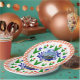 Holland Delftware Style Tulips Floral Pattern Paper Plates. Colourful orange, red, white, blue tulip flowers pattern decoration Holland paper party plate with vintage style Delft Blue Delftware pattern and fully customisable image with Dutch windmills (add your own picture!!) and fully customisable text "Greetings from Holland".