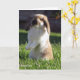 Adorable Holland lop bunny rabbit standing up in the grass and sunlight. Photography by Carolyn Hidalgo