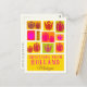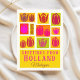 Colourful postcard from Holland, Michigan, USA, with red and bright pink tulip flowers on yellow background. Beautiful greeting or souvenir card for Holland residents, visitors, tourists or fans.