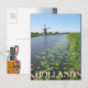 Holland Windmill along Canal Postcard. A tranquil rural landscape with a view of an old traditional Dutch windmill in a Netherland polder with a canal with green lilypads on a beautiful sunny spring day in May in Holland, The Netherlands. Fully Customisable! Change the Word "HOLLAND" to Your Own Text if You Want to! Or add More Text and Images! A Great Dutch Holland Windmill Photo Card to Send as a Tourist or as Dutchman/ Dutchwoman to Your Friends and Family!