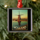 This classic scene of the Netherlands features a windmill on a pond with the reflection of the dusk sky.