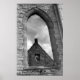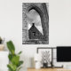 The hollow remains of a church in black and white film. St. Louis, Missouri.