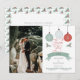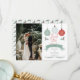 Christmas holiday baubles wedding or other occasion photo "Thank You" design. Features three snowflake design, round baubles in mint green, light grey and dusky red at top with two holly boughs below as well as the "Thank You" text (uneditable--contact designer if you need changed), followed by a mint green banner with the editable word "from" and your names below. Two handdrawn pine branches round out the design at the bottom. On back is a repeat pattern of holly and pine boughs, along with space for your unique message, closing and typed signatures. Simply add your photo and details to complete.