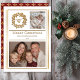 Elegant minimalist two photo foil design with a corner holly and berries wreath containing your monogram initial and your greeting, family name and the year in center. A small portrait-oriented photo adorns the top right corner and a larger landscape-oriented photo adorns the bottom of the design. All text and photos are fully editable and you can easily edit design back to choose from any color back background available. The gold tone pattern overlay on back is not editable, but can be resized or removed. Design by Holiday Hearts Designs (rights reserved).