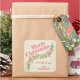 Personalized SQUARE stickers with a stylish, modern watercolor of green holly and red berries on a pale ivory stripe background with your greeting and info in chic lettering. **ALL STICKER SHAPES are already done for you. MATCHING items in our store.