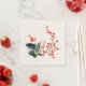 Deep piney-blue green holly sprig with berries in shades of red modern watercolor napkin.