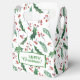 Here is a pretty favour box for the Christmas season that features a colourful holly leaf and red berry pattern. The predominantly green and red pattern is placed on a white background. One side of the box has a green bordered banner that says "Merry Christmas". If you prefer, you may blank out the text fields before ordering, and use the blank banner to write in a name. It's up to you!