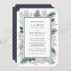 Our modern and elegant Holly and Pine wedding invitation is perfect for your winter wedding, holiday season wedding or Christmas wedding! Wintry design features your wedding day details in midnight blue, framed by a matching border with chic winter botanicals peeking out at the edges, including hunter green pine boughs, sage green leaves and bright red berries. Card reverses to a subtle dotted diamond pattern on midnight blue.