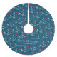 Green grey holly leaves and red berries on blue patterned Christmas personalised name and message tree skirt. Original graphic art and pattern design by www.mylittleeden.com