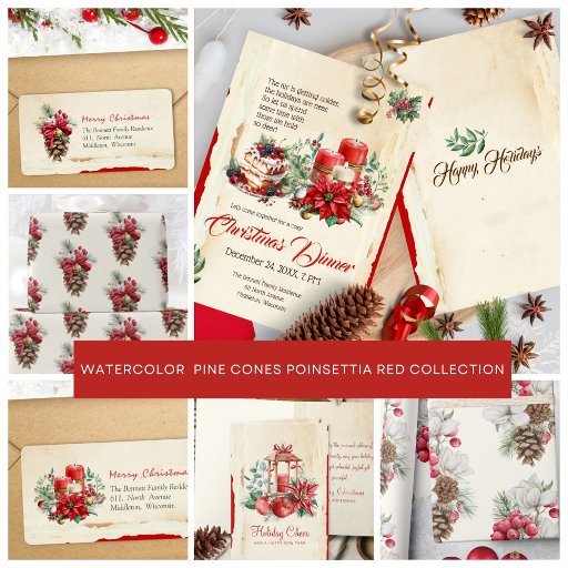 Celebrate the season with this classic return address label featuring pine cones nestled among snowy branches and soft green sprigs. The design blends watercolor pine seasonal Christmas cards with holly berries return address label appeal, offering a timeless look for your holiday mail.