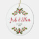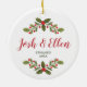 Holly Berries Greenery Personalised Engagement Ceramic Ornament. Personalise with your custom information on both front and back.