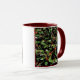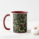 Festive green holly leaves with red berries grace this lovely seasonal mug.
