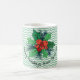 Festive design features watercolor pine sprigs, holly berries and leaves on red background. Personalise with name or holiday message