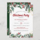 Make a stunning statement this holiday season with this stylish holiday Christmas party invitation! Your party details are framed by borders of botanical graphics in watercolor festive palette with inky lines and golden outlined leaves, red berries, green mistletoe, pine needles, pine bough and other winter foliage.